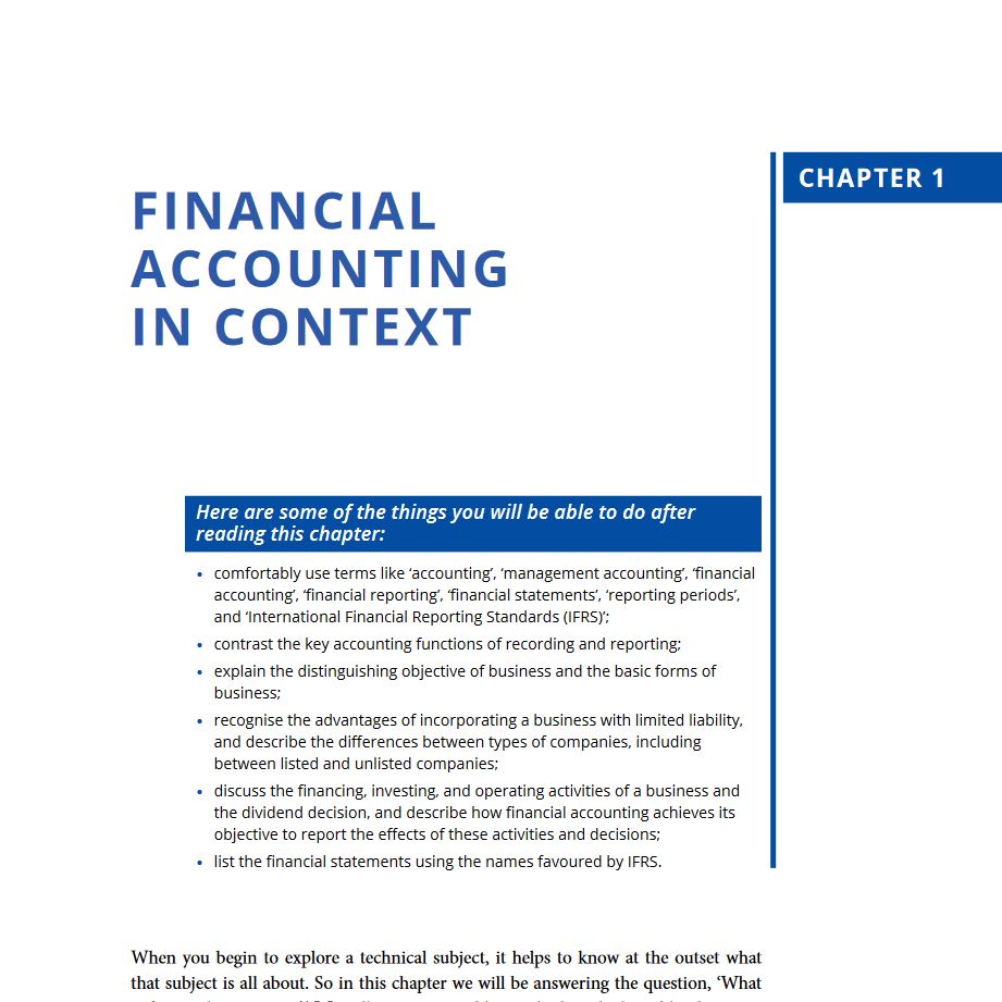 | Background to financial accounting | Chapter 1 | Financial Accounting in Context. The landscape of accounting; key characteristics of businesses; how businesses create value; the purpose of the financial statements. |
